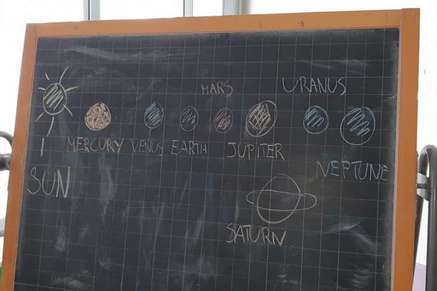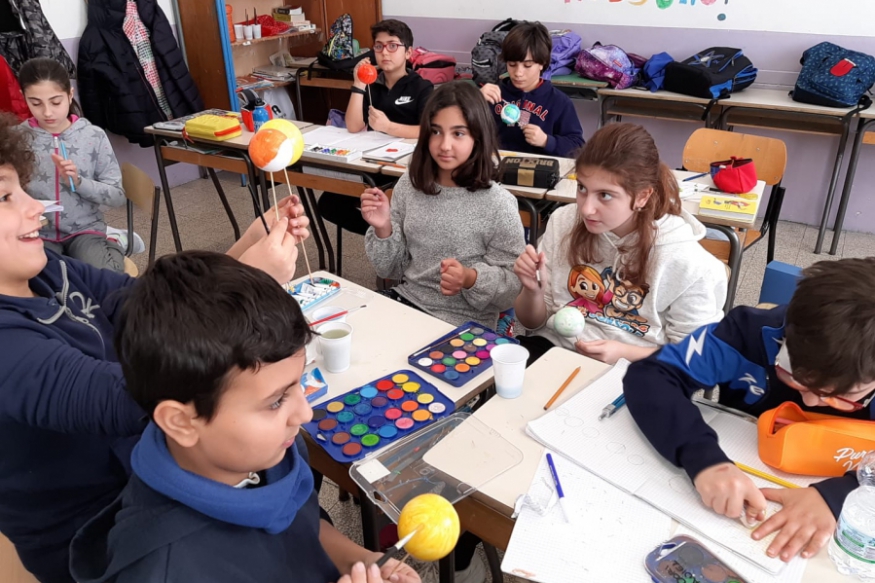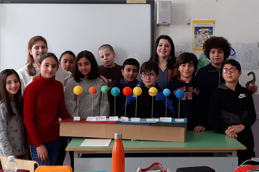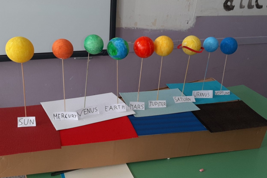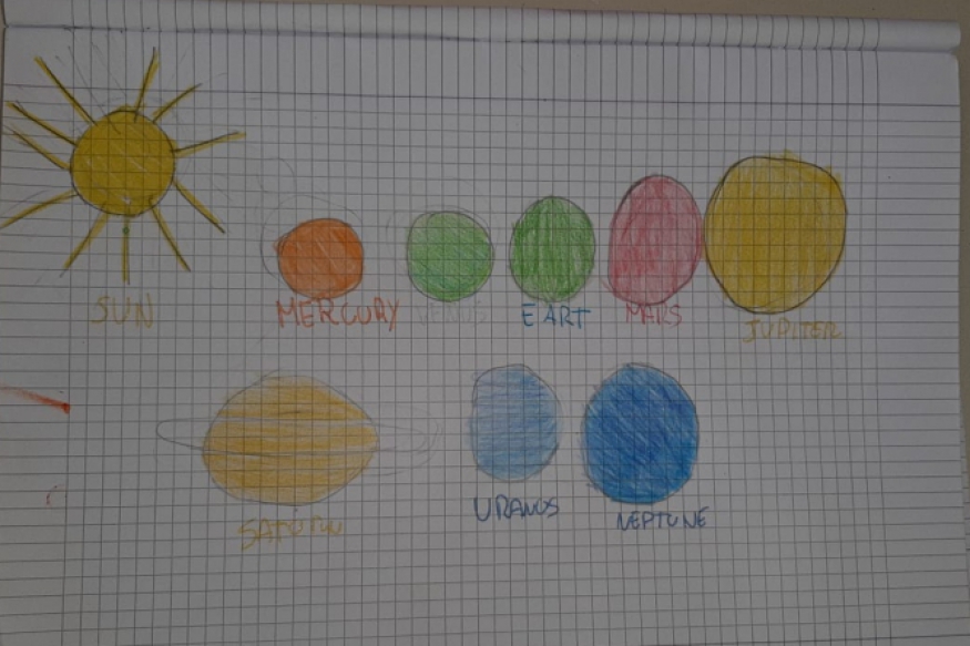 L'insegnante Chiara Giannella, nell'ambito del progetto CLIL, ha deciso di approfondire il sistema solare. Gli alunni della classe quinta hanno così compreso il nome dei pianeti in lingua inglese, realizzando sul loro quadernone un rappresentazione grafica degli otto pianeti dal più vicino al più lontano dal sole. Successivamente ogni alunno ha dipinto un pianeta, secondo i colori indicati: ciò é stato utile per permettere la realizzazione di un modello del sistema solare.