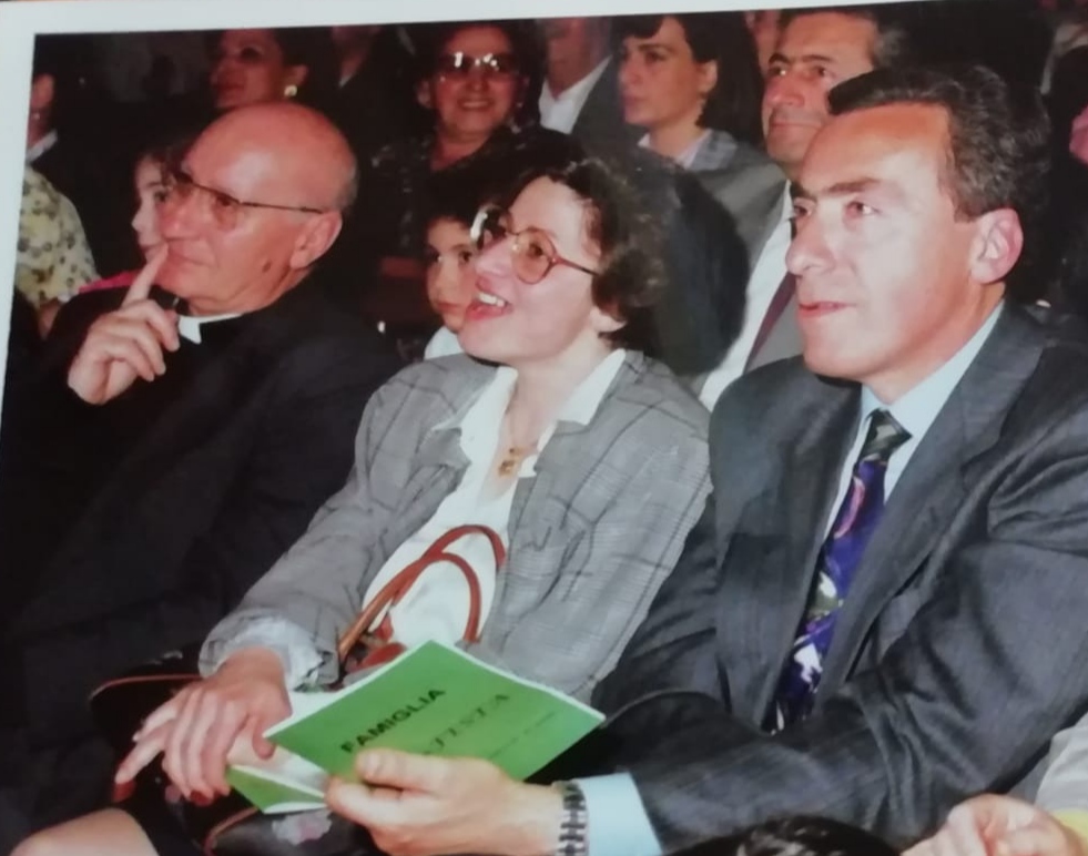 (da sinistra: Don Mario Sibilio, Presidente dell'Ente Pinto, la Dirigente Scolastica prof.ssa Donata Femia, il Sindaco Dott. Antonio La Gloria, alle spalle il prof. Giovanni Sansone membro del CDA, in occasione dello Spettacolo "Famiglia in festa". 30 Maggio 1994 Anno Internazionale della Famiglia.)