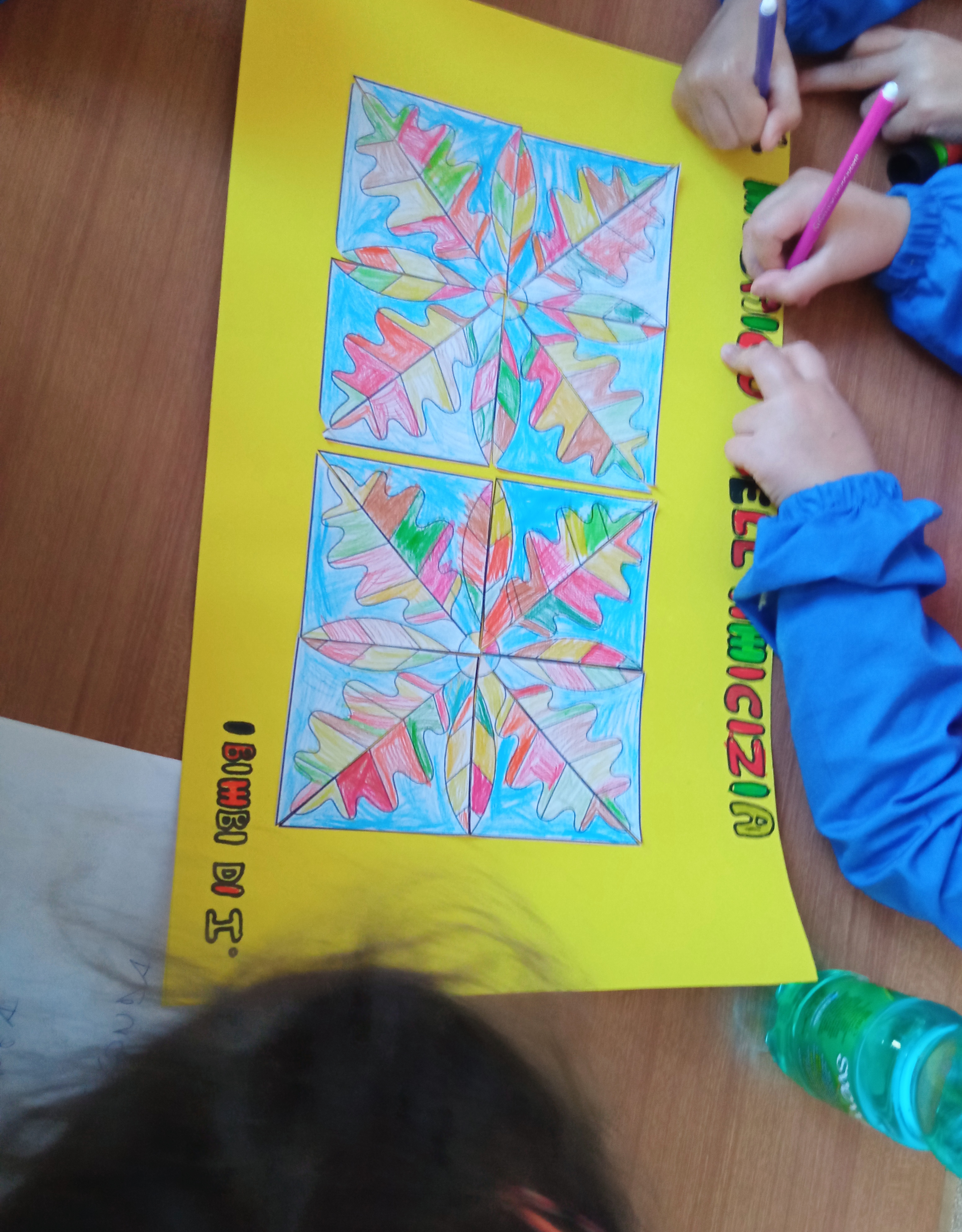 Oggi 11 Novembre, festa di San Martino, cuore dell'autunno, gli alunni della Classe 1ª della Scuola Primaria "Pinto" hanno realizzato un lavoro artistico prettamente autunnale ma da ammirare in ogni momento dell'anno. A ciascun bambino è stato dato un proprio triangolo con le foglie dell'albero di quercia, da colorare. Ogni triangolo si è unito a quello di un compagno, dando vita ad un grande fiore: IL MOSAICO DELL' AMICIZIA, colorato e realizzato da Lorenzo, Anna, Adele, Luca, Benedetta, Francesca, Aurora, Margherita, Mario, MariaFrancesca, Vincenza, e Gabriele.